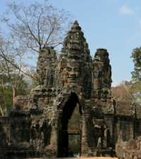 cambodia-vacations-angkor-thom-entranceIn the height of the Khmer Empire, King Jayavarman VII built Angkor Thom, a huge temple complex city much bigger than Angkor Wat in late 12th Century. This was the last capital city in the Khmer Empire which was officially ended in AD1431 as a result of Thais attacked. The capital city covers monuments and temples built by King Jayavarman VII as well as monuments from earlier eras, and his successors. King Jayavarman VII, a dedicated Mahayana Buddist, had brought the religion of Hinduism to Buddhism. The infamous Bayon Temple dedicated to 216 four-faced of smiling Buddha was built. Since then, Bayon temple is classified as the state temple.  Former state temple was Baphuon temple which was built in 11th century dedicated to god Shiva.